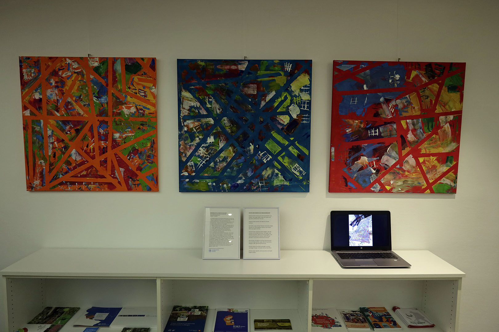 Zum Abschluss des Projektes hatte die Künstlerin Annette Orlinski mit den Kindern der Schulen aus Sulzbach und vom Rastpfuhl die Schutzrechte künstlerisch gestaltet. Hierfür spendete die Fa. Boesner in Saarbrücken Materialien für die Leinwände und Farben. Die Werke der Kinder fanden zum Abschluss der Kinderrechts-Reise im Abgeordnetengebäude hinter dem Saarländischen Landtag ihren Platz.