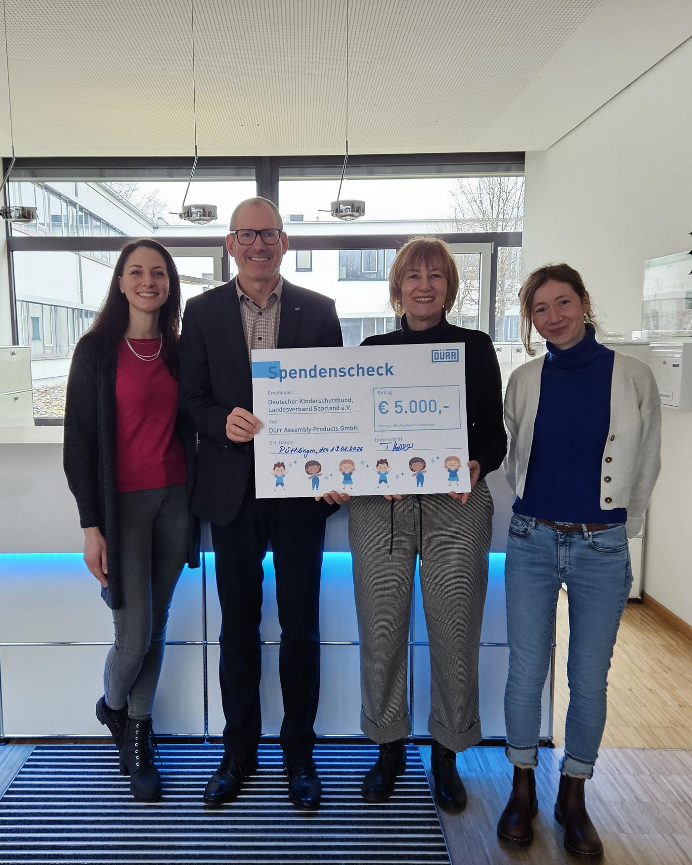 Dieses Jahr haben wir uns sehr über eine Spende der Firma Dürr Assembly Products GmbH in Höhe von 5000 € gefreut, die uns am 19.01. persönlich von dem Geschäftsführer Thomas Kolb und seinen Kolleginnen Svenja Glöckner und Gertrud Speicher in Püttlingen überreicht wurde.